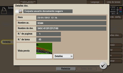 Puede tocar [Detalles] o una imagen en miniatura para obtener una vista previa de la imagen del archivo.