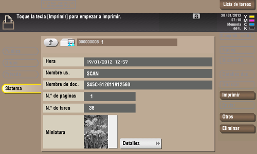 [Detalles] | Puede tocar [Detalles] o una imagen en miniatura para obtener una vista previa de la imagen del archivo.