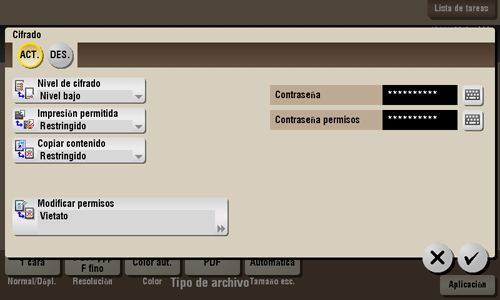 Si el tipo de archivo se ha ajustado a [PDF] o [PDF compacto], es posible cifrar los archivos PDF.