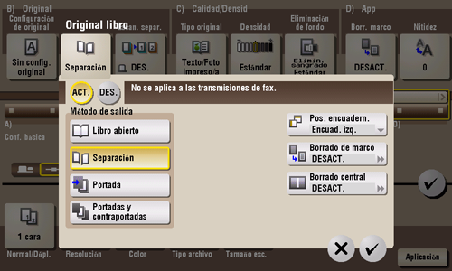 [ACT.]/[DES.] | Seleccione [ACT.] para especificar Original libro. |