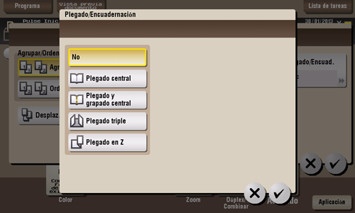 Son necesarias la unidad de acabado FS-535 y la unidad de plegado en Z ZU-606 (solo para bizhub C554e).