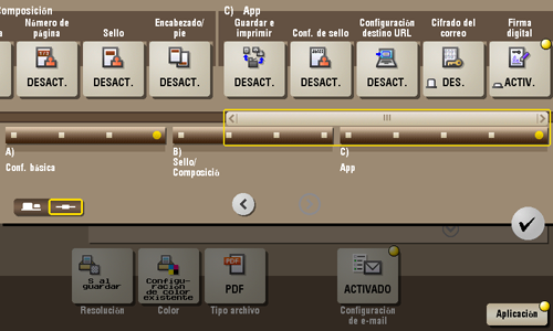 Si no puede cambiar el estado [ACTIV.] o [DESACT.], se da por supuesto que la opción de añadir siempre una firma digital la especifica el administrador.