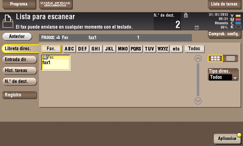 Desde la Libreta de direcciones, seleccione un destino registrado en la máquina. Es posible retransmitir archivos seleccionando varios destinos.