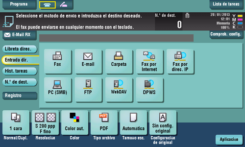 [E-mail] | Introduzca una dirección de correo electrónico de destino cuando se envíen datos de originales escaneados como datos adjuntos al e-mail. |