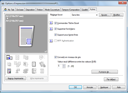 [Support pour lignes fines] est uniquement disponible en cas d'utilisation du pilote d'imprimante pour Windows (PCL).