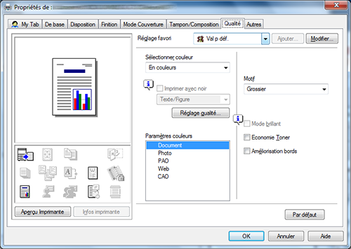 [Mode brillant] | Cochez cette case pour imprimer les pages avec un aspect brillant. La vitesse d'impression est réduite. |