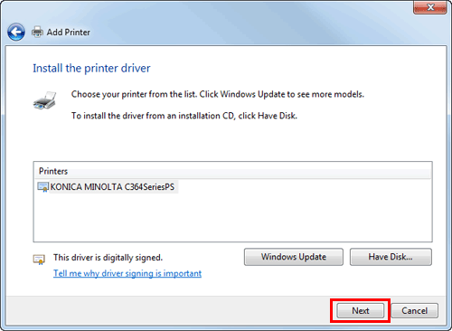 La boîte de dialogue [Installer le pilote d'imprimante] apparaît.