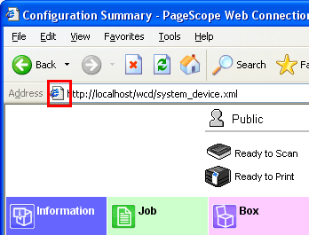 Vous pouvez créer un raccourci vers chaque page de fonction Web Connection à n'importe quel emplacement, par exemple le Bureau de votre ordinateur.