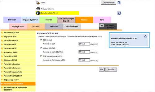 Dans le menu [Réseau] qui apparaît après que vous vous êtes connecté en mode Administrateur de Web Connection, vous pouvez utiliser l'aide contextuelle.