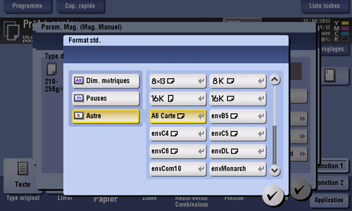 ] - [Modif. param mag] - [Type de papier] - [Papier à onglets].