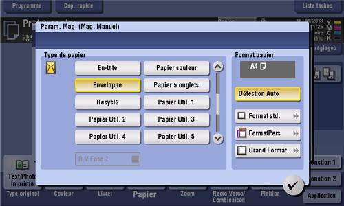 ] - [Modif. param mag] - [Type de papier] - [Enveloppe].