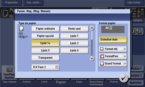 ] - [Modif. param mag] - [Type de papier] - [Épais 1+].