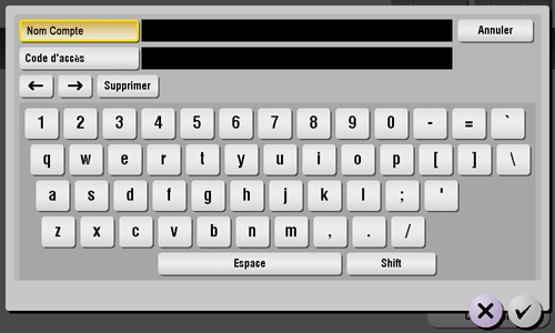 Saisissez le nom du compte et le code d'accès, puis appuyez sur [Valider].