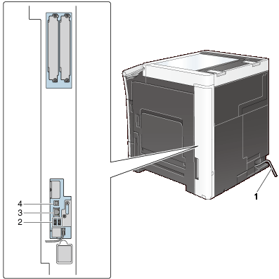 4 | Port USB (type B) USB 2.0/1.1 | Connecter à ce port lorsque cette machine est utilisée comme imprimante USB. |