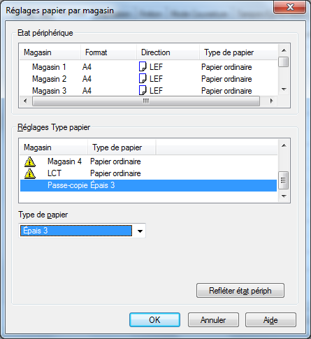 Cliquez sur [Réglages papier par magasin].