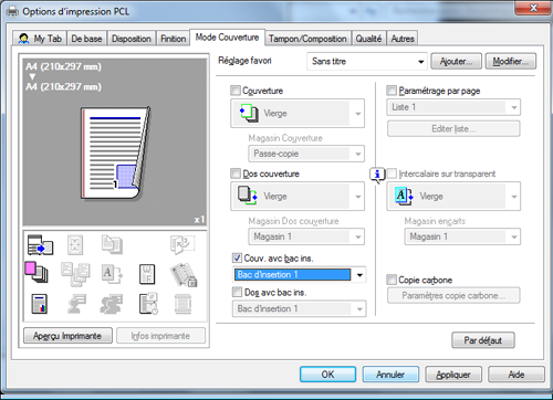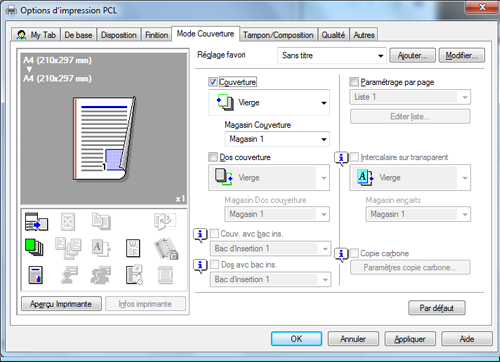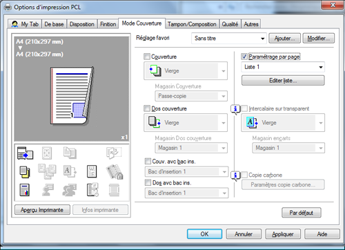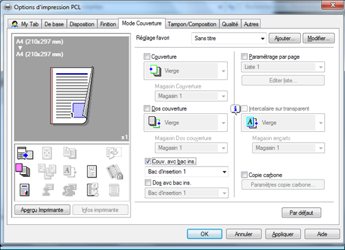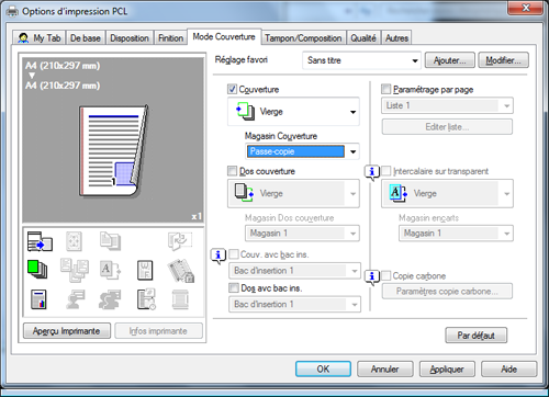Pour imprimer la couverture sur un différent type de papier, cochez la case [Couverture] sur l'onglet [Mode Couverture].