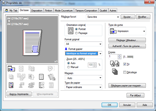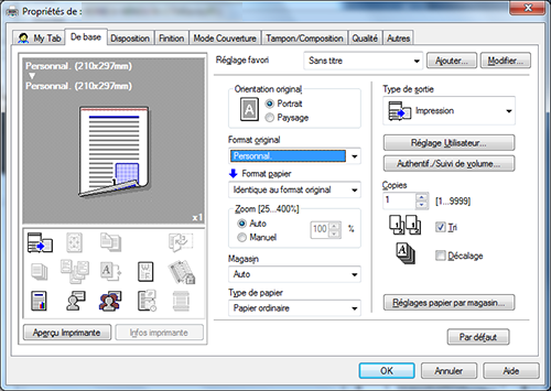Dans [Format original] ou [Format papier] sur l'onglet [De base], sélectionnez [Personnal.].