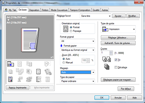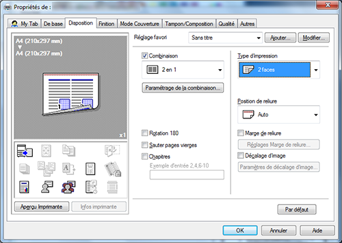 Régler l'impression en noir et blanc et l'impression recto-verso comme valeurs initiales permet d'économiser du toner et du papier.