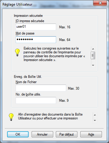 Impression Sécurisée permet d'attribuer une autorisation d'impression à un nombre limité d'utilisateurs connaissant le mot de passe attribué au document. ID & Imprimer ne permet qu'à utilisateur enregistré de procéder à l'impression.