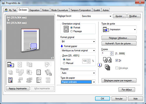 Non seulement l'impression en noir et blanc mais aussi les valeurs initiales d'autres fonctions fréquemment utilisées peuvent être modifiées pour ne pas avoir à configurer les réglages à chaque fois que vous imprimez un document.