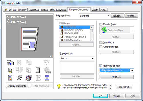 De même, il existe une fonction de surimpression permettant d'imprimer sur une feuille imprimée à partir d'un fichier enregistré sur un ordinateur.