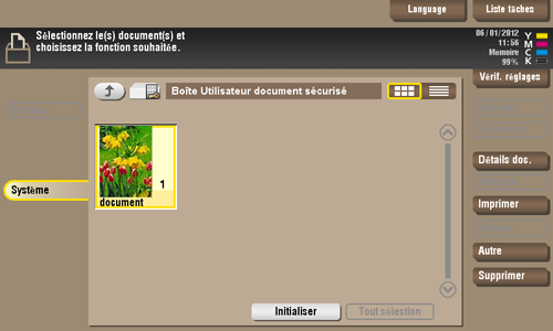 Le document d'impression sécurisée est imprimé et automatiquement supprimé de la Boîte Document Sécurisé.