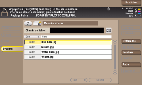 Tapez sur [Imprimer doc. à part. de la mémoire ext.].