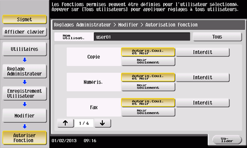 Tapez sur [Autoriser Fonction] pour fixer la limite pour les différentes fonctions.