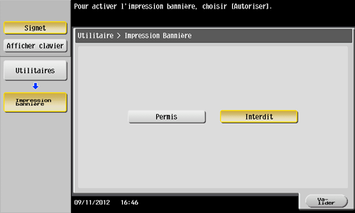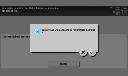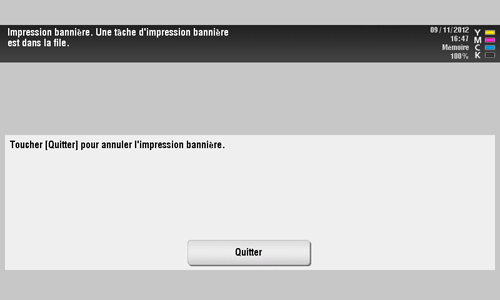 Si une tâche d'impression est reçue avec un réglage papier pour un format non bannière alors que la machine est en attente d'impression sur une bannière, cette tâche est mise en file d'attente.
