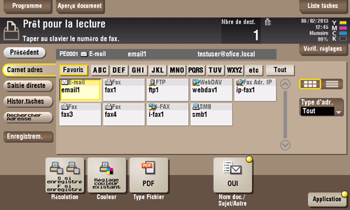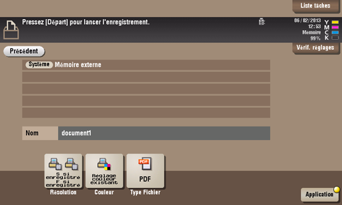 Vous pouvez changer les réglages pour [Résolution], [Couleur] et [Type Fichier].