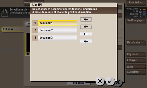 Changez l'ordre des fichiers à imprimer ou envoyer si nécessaire, puis tapez sur [OK].