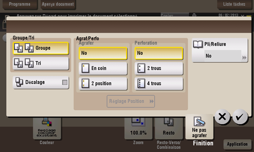 Tapez sur [Finition] et configurez les différents éléments pour la finition.