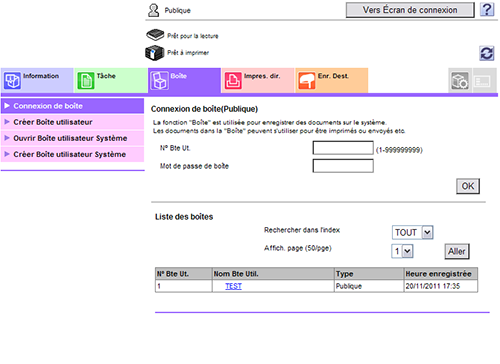 Sélectionnez [Boîte Utilisat.] - [Boîte Utilisat. Public/Privé].