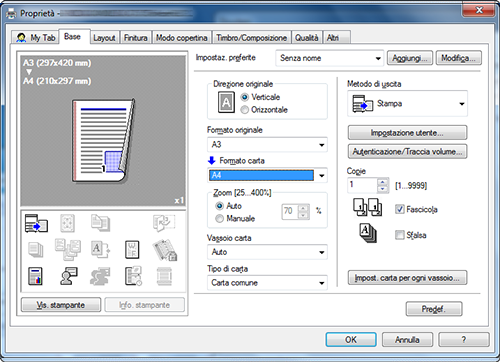 Visualizzare la finestra [Preferenze stampa] del driver di stampa.