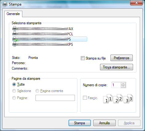 La finestra di dialogo [Stampa] differisce a seconda del software applicativo.