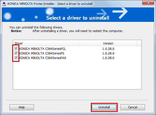 Selezionare il driver di stampa da eliminare e fare clic su [Disinstalla].