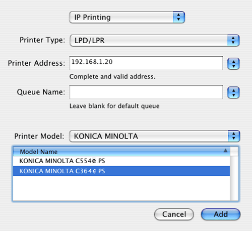 11. In [Printer Address:], inserire l'indirizzo IP della macchina.