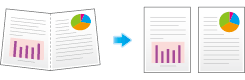 È possibile copiare un documento aperto di due pagine separatamente in due pagine con una sola operazione, senza bisogno di scansionare separatamente ogni pagina. Posizionare l'originale aperto di due pagine nell'ADF.