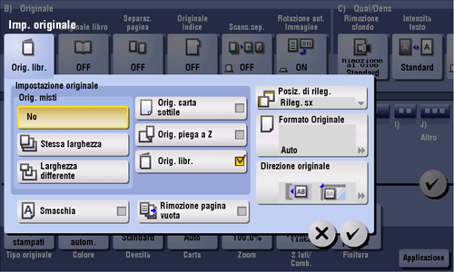 Fare clic su [Applicazione] - [Originale] - [Imp. originale] e selezionare [Orig. libr.].