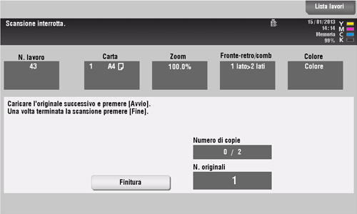 Una volta scansionati tutti gli originali, fare clic su [Finitura] e premere il tasto Avvio.