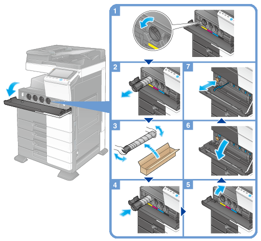 Prima di installare la nuova cartuccia del toner, scuoterla bene, da 5 a 10 volte circa.