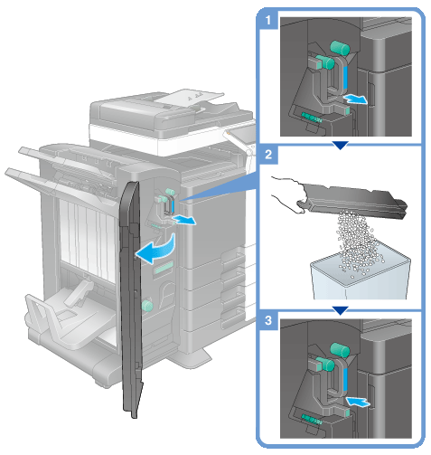 La figura mostra l'Unità di finitura FS-534 con la Pinzatrice a sella SD-511 e il Kit di foratura PK-520 installati.