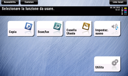 Per visualizzare il menu principale, fare clic su [Menu] sul pannello di controllo. I tasti visualizzati sul menu principale possono essere personalizzati in base alle esigenze.