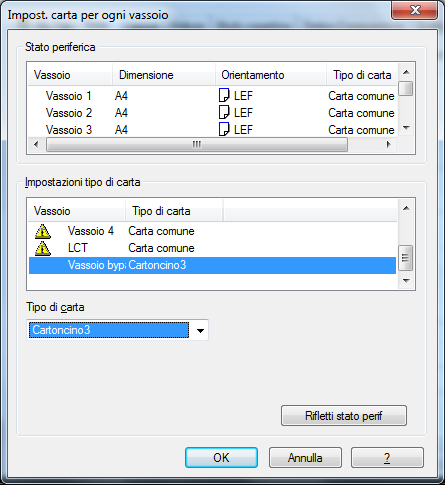 Controllare il vassoio carta e le impostazioni della carta modificate automaticamente, quindi fare clic su [Sì].