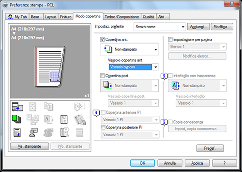 La [Copertina ant.] e la [Copertina anteriore PI] non possono essere selezionate contemporaneamente.