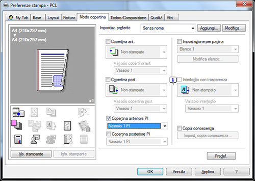 Se si seleziona la casella di controllo [Copertina anteriore PI] al Punto 4, verificare che la carta sia caricata nell'Inseritore copertine, quindi selezionare un vassoio carta.