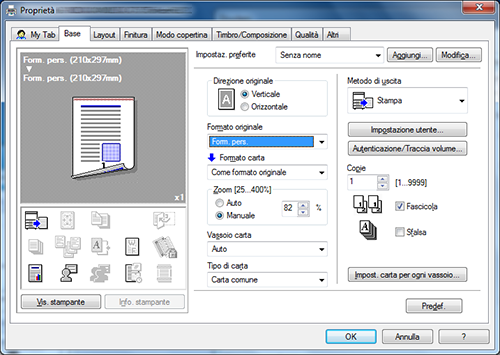 Da [Formato originale] oppure [Formato carta] sulla scheda [Base], selezionare [Form. pers.].