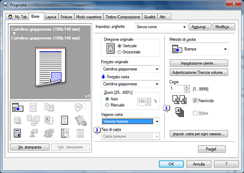 In [Formato originale] sulla scheda [Base], selezionare [Busta] oppure [Cartolina giapponese].