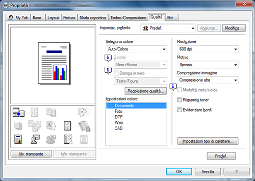 Da [Impostazioni colore] sulla scheda [Qualità], selezionare il tipo di documento da stampare.