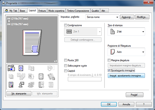 Per abilitare lo spostamento immagine, selezionare la casella di controllo [Spostamento immagine] sulla scheda [Layout] e fare clic su [Impost. spostamento immagine].